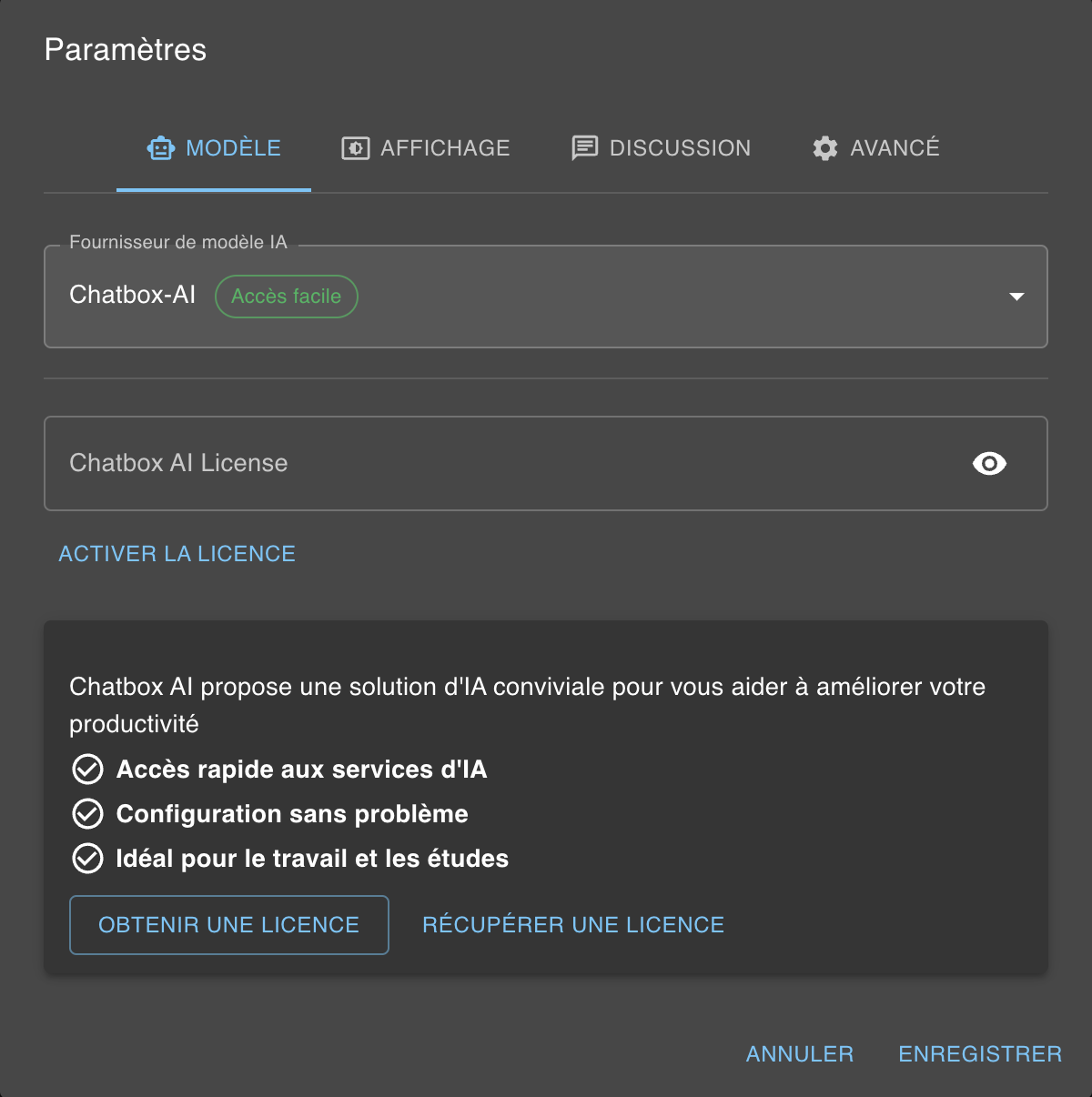 Utiliser un modèle sur Chatbox